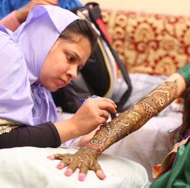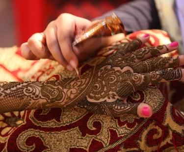 Born in India and having traversed Asia and the UK, I infuse diverse cultural influences into my art. I take pride in adorning brides with patterns that reflect their dreams, particularly treasuring traditional Indian bridal designs. The mehendi ceremony holds a special place in my heart, and I'm honoured to contribute to the joy of weddings, using 100% natural henna paste and steering clear of unethical alternatives like "black henna."